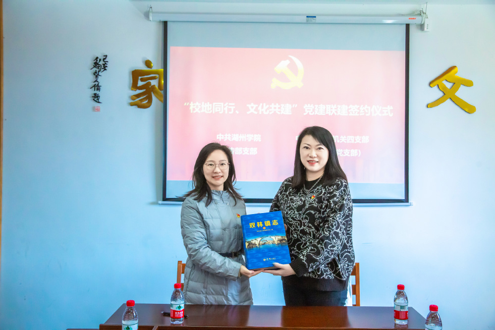 双林镇机关四支部(文化产业党支部)和宣传部支部签订了“校地同行、文化共建”党建联建项目结对共建协议,双林镇综合文化站向机关党委赠送书籍《双林镇志》。与会人员结合自身工作岗位职责,交流分享了党的二十届三中全会精神的学习心得。