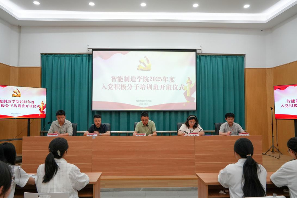 为深入学习贯彻习近平新时代中国特色社会主义思想,进一步做好新时代党员发展工作,全面提高入党积极分子理论素养和政治觉悟,严把发展党员“入口关”“质量关”,5月19日晚18:30,智能制造学院2025年度入党积极分子培训班开班仪式于1-5B13会议室隆重举行。学院党委书记、副院长蔡志端,组织员,各学生党支部支部书记及41名学员参会。